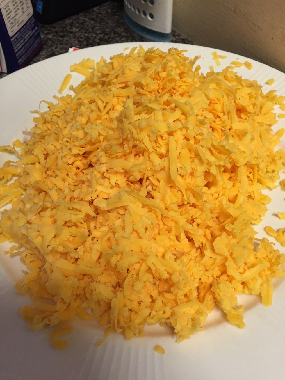About 6 ounces of the cheddar cheese.