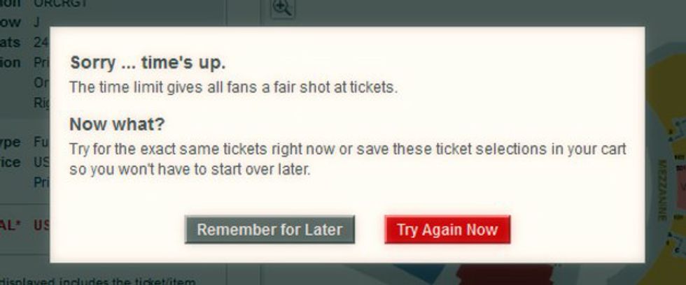 Once you have picked out your seats and your shipping plan, you have approximately a three minute timer for entering in credit card information. During this time you question if you should spend half of your life’s savings to see this concert.