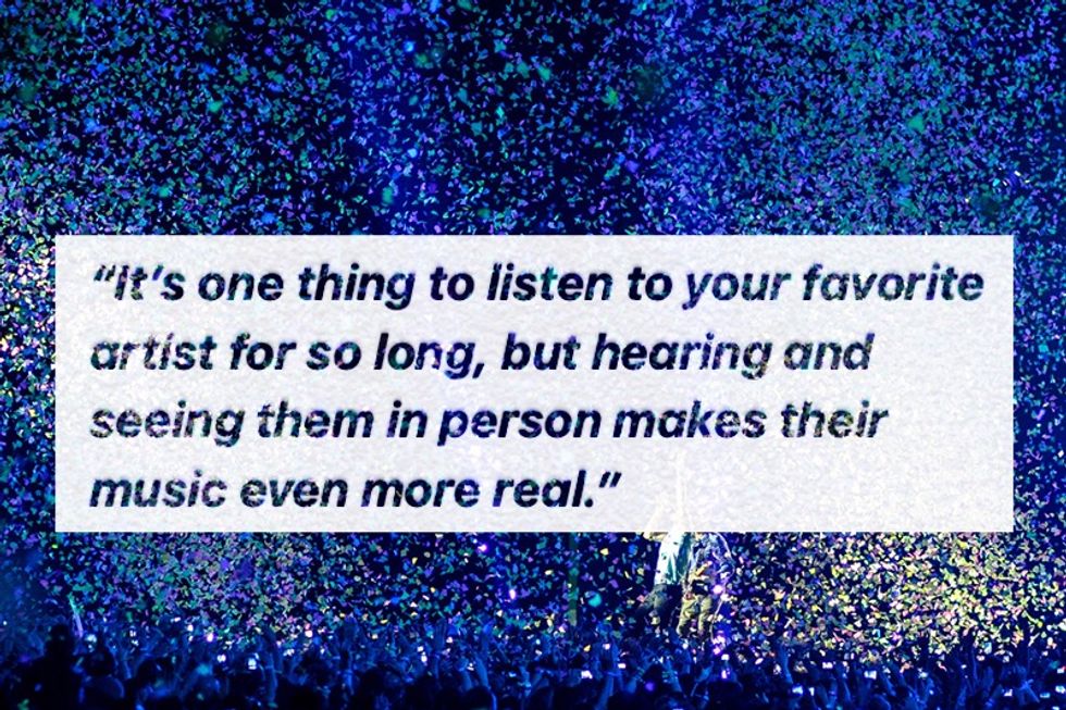 I look forward to all the concerts I will attend in the future. I hope that everyone will get the chance to see their favorite artist perform live one day; it’s an unparalleled experience.