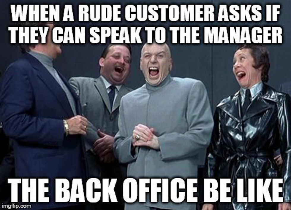 I have only gotten this once so far over the last three food service jobs I have had. The sentence say it all. The cashier/employees tell the customer something and the customer does not believe it. The manager asks what the problem is and tells the customer exactly what I just informed them of. This does nothing but stress both sides of the counter out.