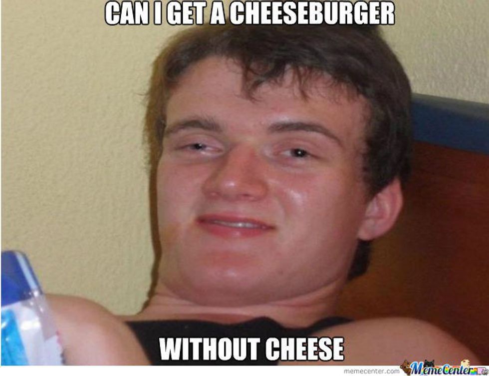 Usually hungry and confused means hangover, but in this case, it highlights customers who puzzle the cashier in numerous ways. Almost a week ago, I had a customer that still puzzles me to this day. She asked for a cheeseburger without cheese. I countered with "We do have just a plain hamburger meal, ma'am." She got utterly offended. "No, I said a cheeseburger without cheese." I tried not to laugh at her solemn look. Did the cheese change its physical form? I wasn't sure and didn't really care. I rang it up as a hamburger meal to leave the back kitchen a little less perplexed. She rang out and didn't give me another problem. I'm assuming this kind of thing happens when people are tired and hungry. Kind of like a "hangry" (hungry and angry) situation. Nonetheless, it'll always be hysterical.