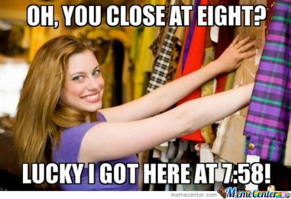 I used to work midnight shifts at a truck stop when I was younger. We had the shops open until 10 or 11 p.m. I would get customers that would come to the window or counter two minutes before I closed. I have even had customers knock on the metal gate that was shielding the restaurant to ask if we are open. No no, we're open. You just gotta climb the gate. I love and hate when customers catch me last minute, because it always gives me a great story to tell.
