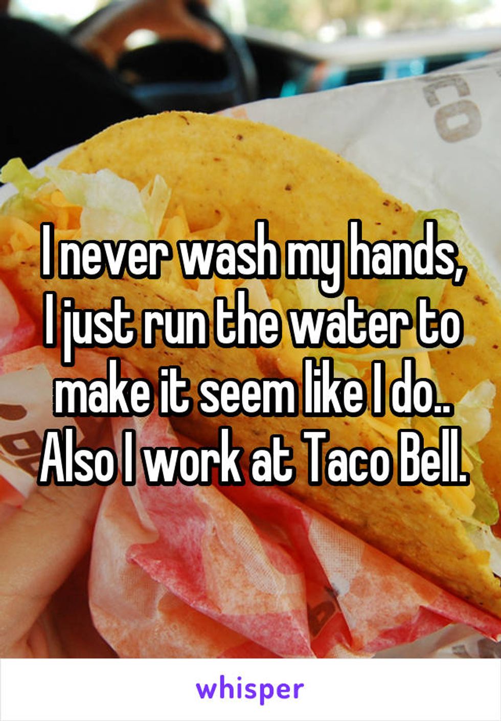 If you're anything like me, you've probably tried most of Taco Bell's menu, and happier hour is your favorite time of the day (From 2-5, $1 medium drinks and loaded grillers? Come on now). However, these confessions from ACTUAL Taco Bell employees via the app Whisper, where people leak their juiciest secrets in total confidence, will probably make you never want to eat there again.