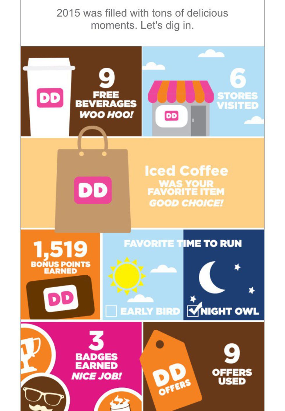 And I may be laughing while I write this, but it's actually a bit of a problem: I am addicted to Dunkin' Donuts (and coffee). Go ahead. Roll your eyes at me. I proclaim my caffeine addiction at least once a day, usually in between my second and third cup of coffee, and I laugh about it because it is funny. I actually can't function on less than nine hours of sleep without a coffee. And then I got an email from Dunkin' Donuts Jan. 26 with the subject line "Karla — here's your DD Perks Year In Review!" and I began to see my addiction as slightly problematic...