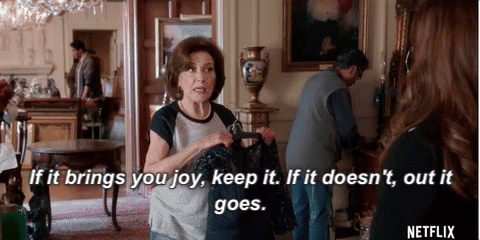 Although I rose to the occasion – see, I’m a low-key hoarder – it was quite difficult holding things up in front of my face and then giving them value to determine if they’re worthy. I tried Emily Gilmore/Marie Kondo’s method of decluttering by asking myself if each object gave me joy. When the answer was yes for the majority of my objects, I knew that wasn’t going to work.