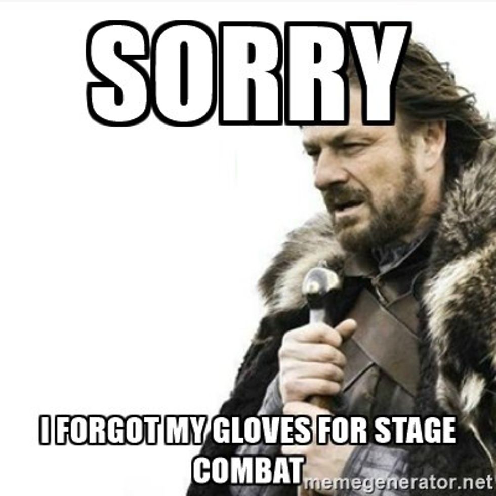 T-shirts, leggings, and athletic sneakers. Oh, and don't forget the yoga mat being lugged around on our shoulders. Studio kids have a lot more movement classes than you'd think because of our class schedules. When you're waving a weapon around in stage combat, it helps to have shoes that grip the floor, because avoiding a swing in heels or sandals isn't easy. Also, we have a class first and second semester where we lie on the ground and reset our bodies (see #9). I remember wearing a dress or skirt the days we had that class and feeling very exposed, even if I wore shorts underneath. And don't get me started on improv class.