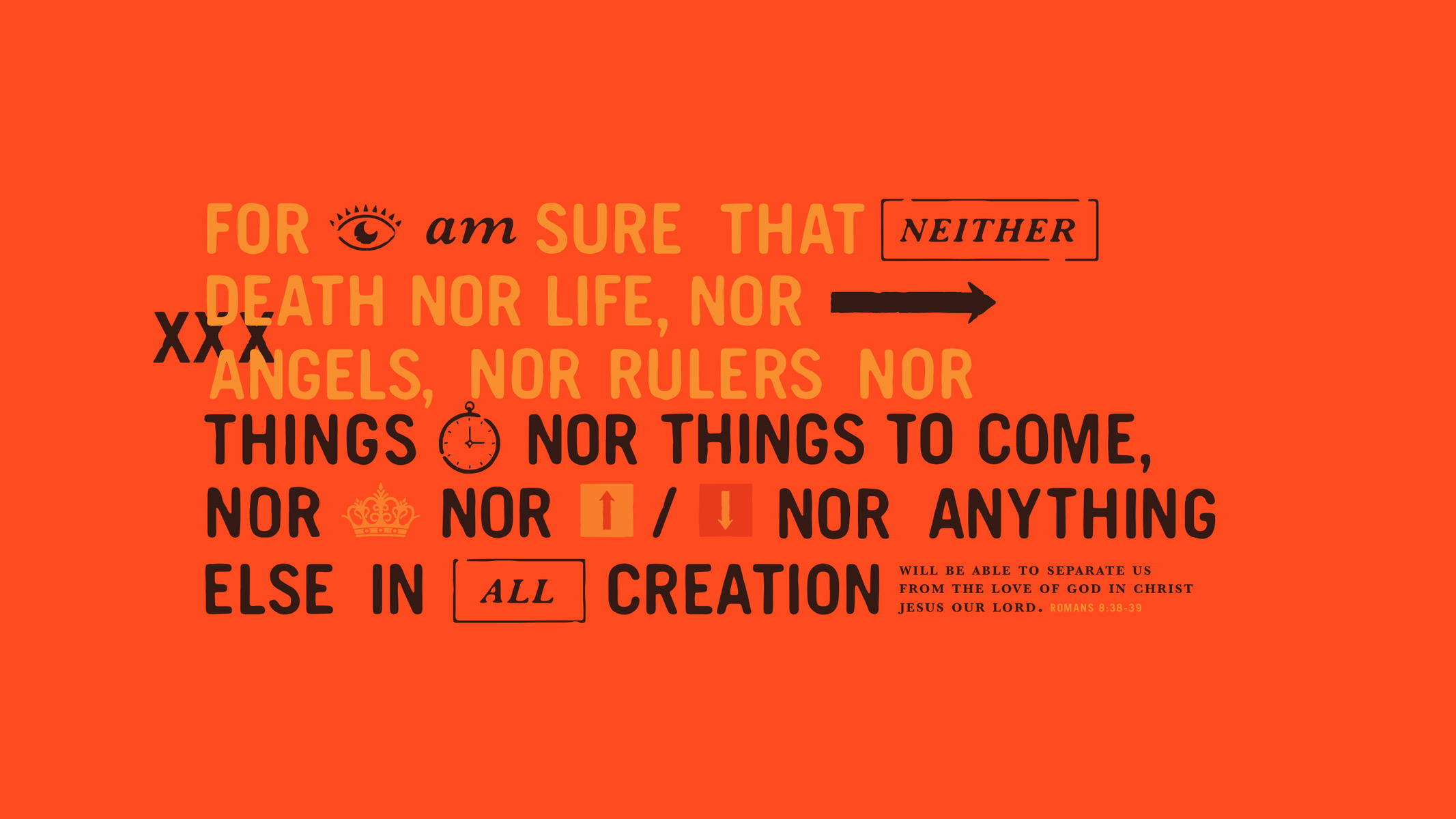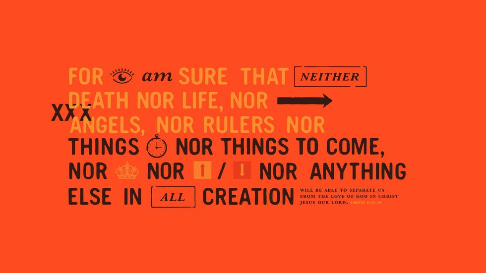 "For I am convinced that neither death nor life, neither angels nor demons, neither the present nor the future, nor any powers, neither height nor depth, nor anything else in all creation, will be able to separate us from the love of God that is in Christ Jesus our Lord."
