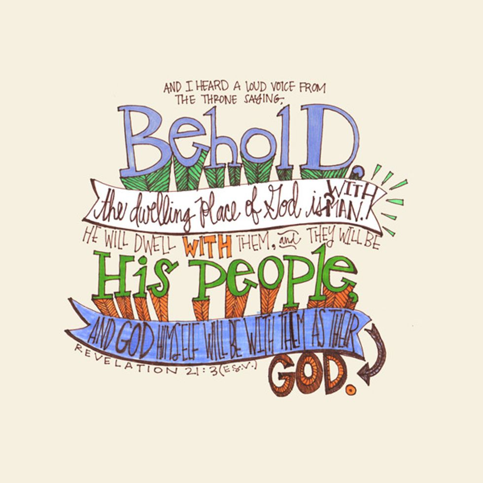 "And I heard a loud voice from the throne saying, 'Look! God's dwelling place is now among the people, and he will dwell with them. They will be his people, and God himself will be with them and be their God.'"