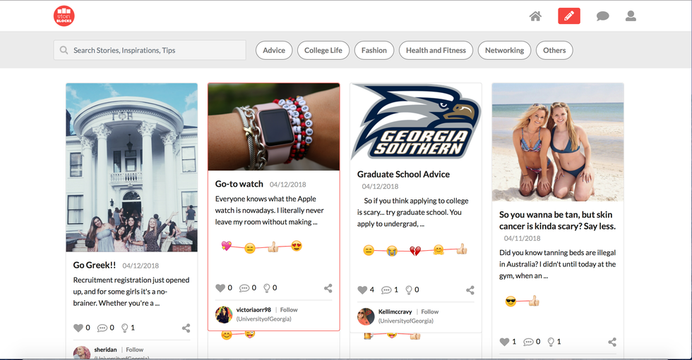 Stori Blocks is a brand new social media platform, and it is perfect. It is just for college students and it allows you to post short stories on whatever you want. There is anything from advice on darties to advice on classes.