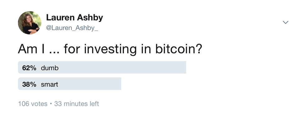 When I asked my twitter followers their opinion on my recent investment in bitcoin, their response did not agree with me.
