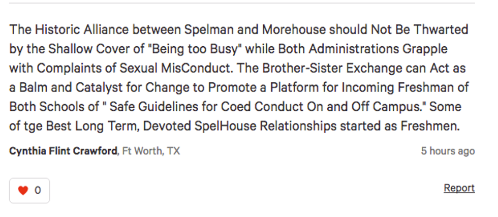 And as the summer comes to a close the school year is set to commence in a few weeks. Thanks to the voices of past and present Spelhouse students the incoming class will be able to enjoy the benefits of once again participating in the Brother Sister Exchange, a tradition that has become more of a necessity than just activity that we participate in. The Morehouse brother that I was assigned alongside the many others that I've adopted as my brothers have become life long friends that I've developed genuine relationships with and I'm sure that my Spelman sisters will continue to do the same.