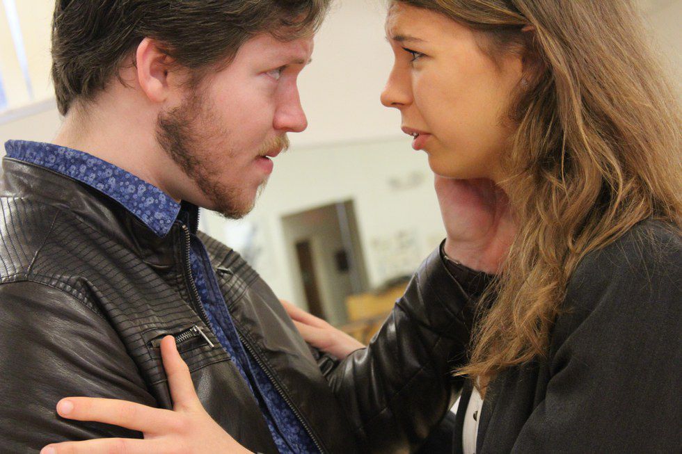 It’s truly a rollercoaster, and a fun one—the level of acting nuance that necessary for the performance was impressive. Barrett and Casteel displayed strength in dealing with the difficult topics explored by the play, such as domestic violence and cancer. The intensity of emotion they use is easily seen, due to the intimate black box venue. The same goes for the lovely details of their costumes, from Marianne’s electric, blue velvet shoes to the comfortable, beekeeper-esque feel of Roland’s button-up shirt. Thanks to the great work on the part of the director, the actors, the set and lighting designer, and the rest of the crew, audiences are able to see the beautiful falling-together—or falling-apart—of, as Marianne puts it, two particles floating through space and living their lives.