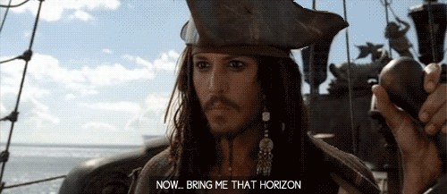 On the beach/on the ocean/at Tortuga = the life of Jack Sparrow, constantly.