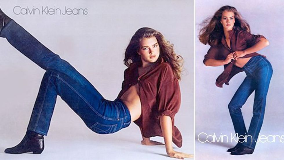 Mega casual-wear brand Calvin Klein has been no stranger to controversy in their advertising campaigns. In 1980, the brand caused a stir with their commercials starring a then 15-year-old Brooke Shields sporting the über-tight denim. The commercials played into Shields' growing, hyper-sexualized image, with her speaking the would-be famous tagline: "What comes between me and my Calvins? Nothing." The implication that the young Shields wasn't wearing underwear under her jeans seemed to set the world on fire, and this only fed into the CK craze.