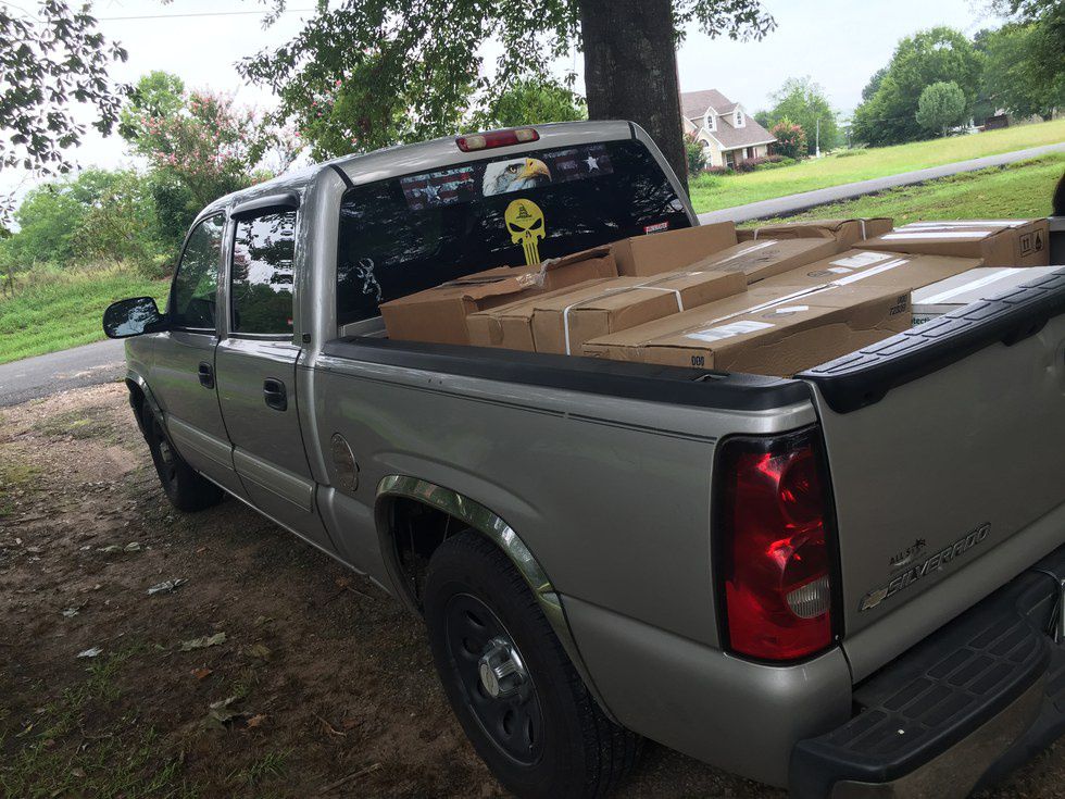 There was the SUV we were with, the truck, and several other vehicles picking up stuff from other locations. If I heard correctly, one location had over 7 truck loads of donations. I couldn't even believe it.