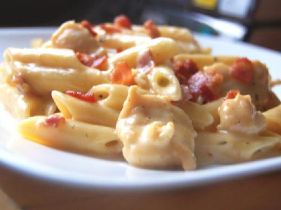 This recipe is seriously so easy and tastes way better than the boxed stuff. All you have to do is throw some pasta, cheese, and alfredo sauce in a dish and stick it in the over. Easy peasy.