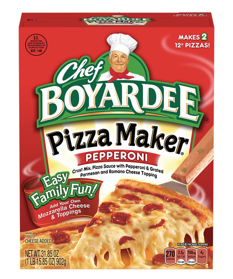 These Chef Boyardee pizza kits actually make a really good homemade pizza! Just follow the instructions on the box!