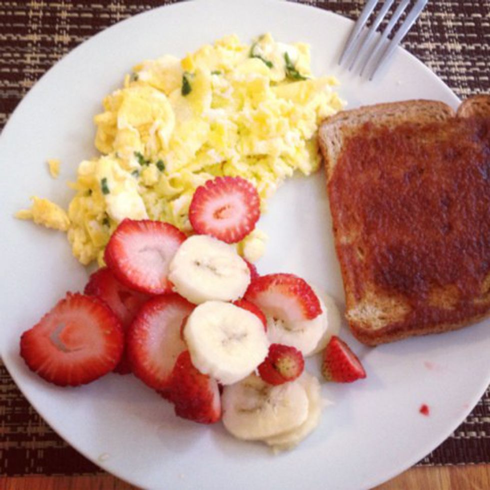Eggs and toast are both super easy to make, and much better than eating out alternatives. Add some fruit, and you have an entire meal!