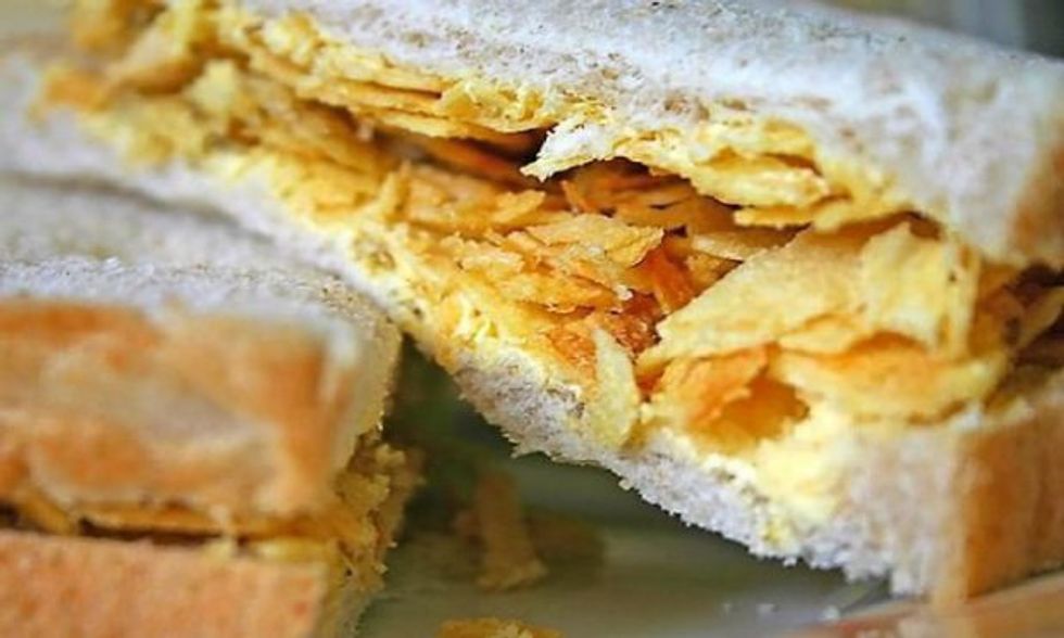 Next time someone gives you a weird look for putting potato chips on your ham and cheese, just tell them that crisp sandwiches are an actual thing in England. Not kidding. They're also known as chipwiches or "chippy sandwiches".