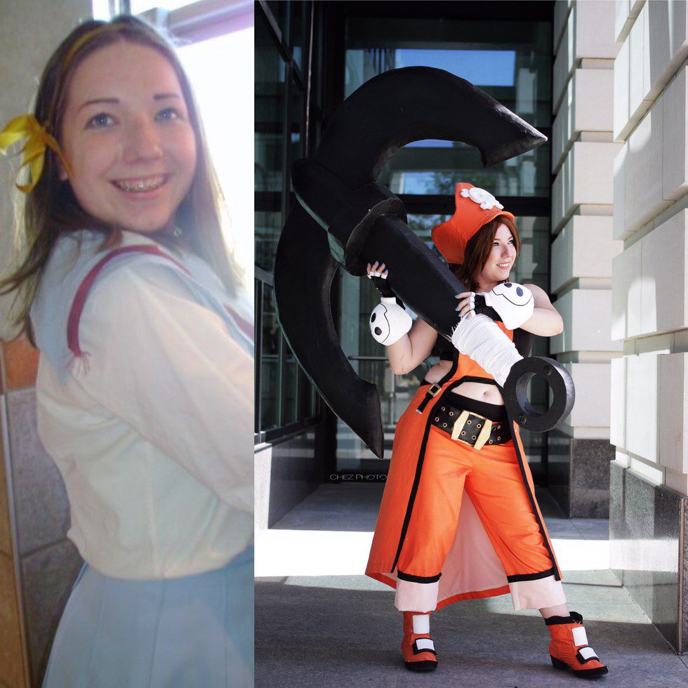 I first delved into the world of cosplay at the boisterous age of 15, after being a fan of anime and video games since I was a small child. A friend planned a trip for us to visit North Carolina's Animazement, during which I turned my love of art, drawing, and minimal sewing knowledge into a craft that has yet to disinterest me well into my early twenties. At Animazement, I felt like a child again, seeing all of my favorite video characters come to life at the hands of ordinary fans like myself. Pictured below is my first costume, created in 2008 from miscellaneous Goodwill finds hand-sewn together, and my most recent costume in 2016, a concoction of insulation foam, hand-dyed fabrics, thermoplastic, and hand-punched grommets into a belt. It's safe to say that myself and the hobby have come a long way.