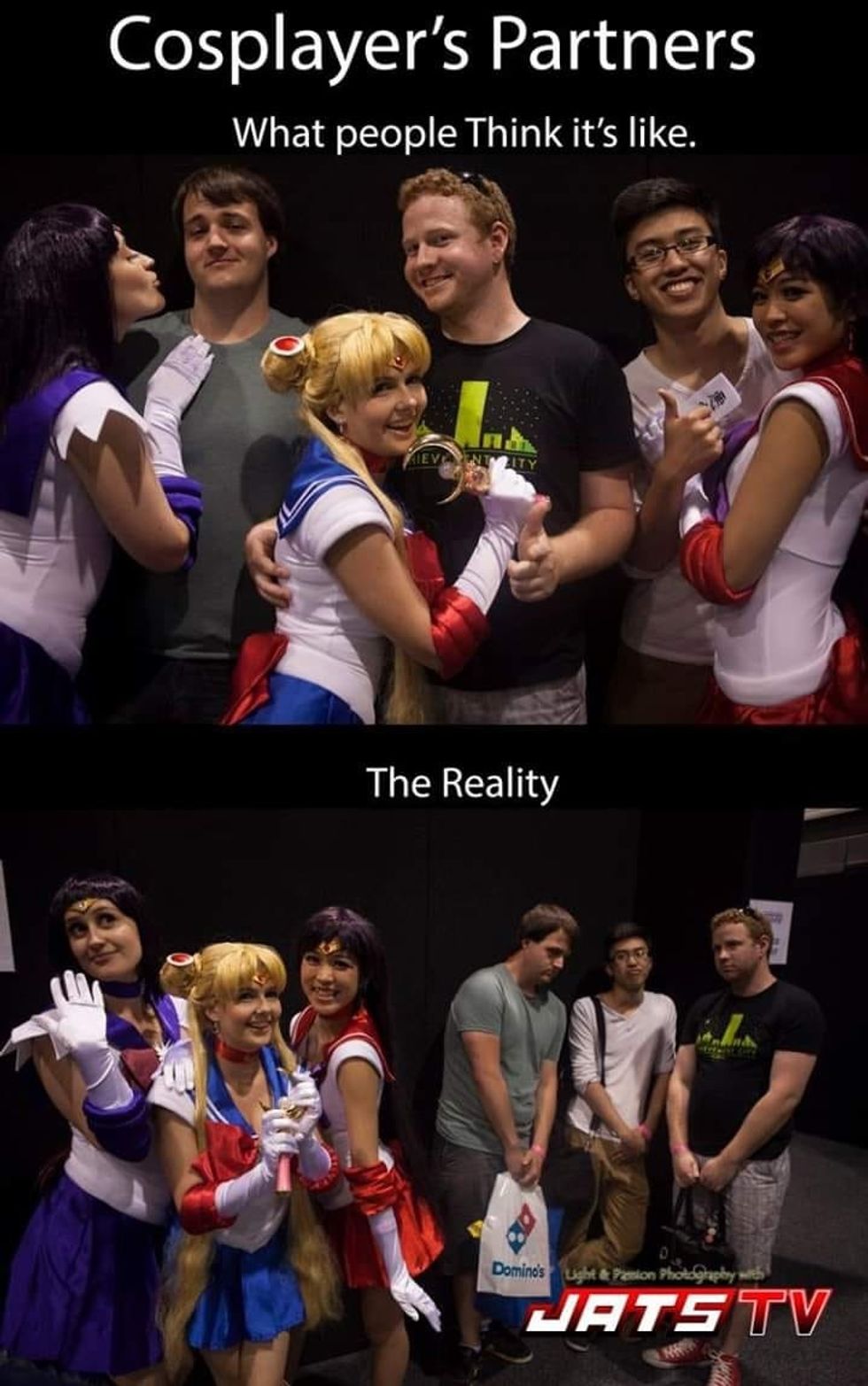 Best way to get great pictures of your cosplayer significant other's cosplay? Photo-shoots. It may be you taking pictures on their phones, or done professionally (support your local photographers and don't forget to credit them!). Just be prepared for the waiting game of the photo shoot.