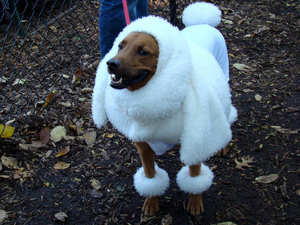 Why not dress your dog up as...a dog! This costume is poodles and poodles of fun and gives your mutt the feeling of being a purebred pooch! Purchase a small shirt and fluffy fabric to make a DIY costume!