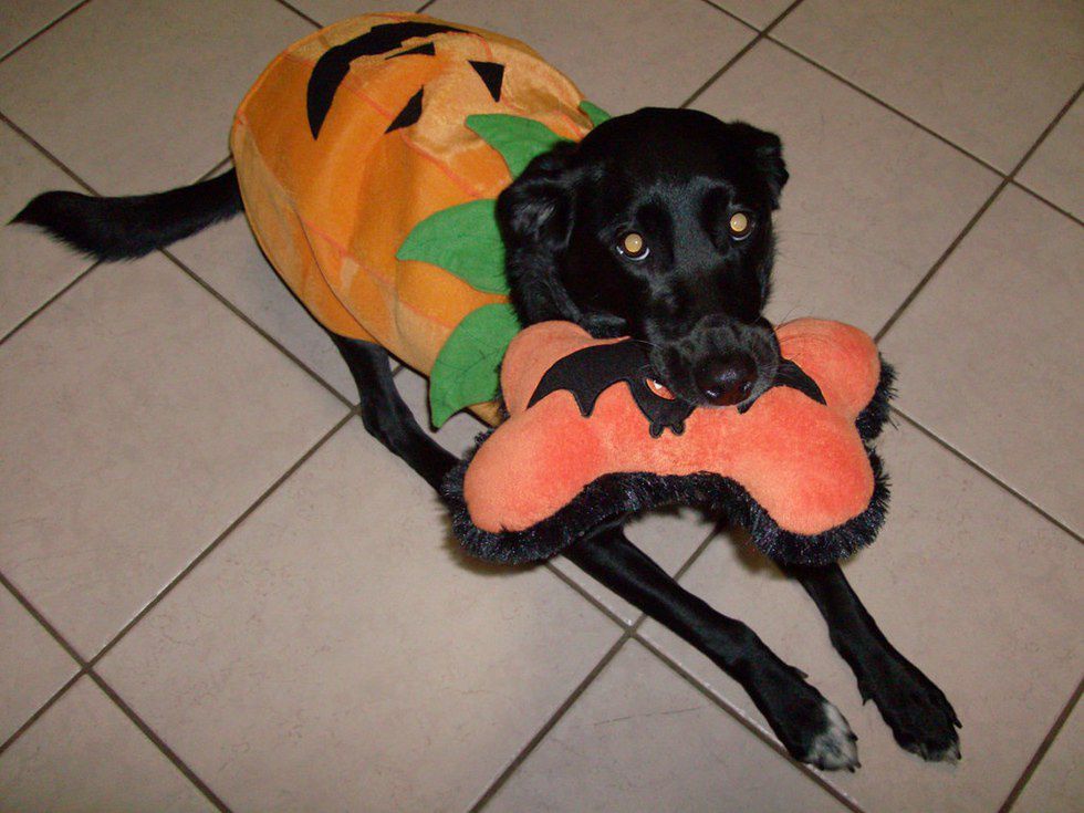 This PUPkin came straight from the patch and carved to perfection. Watch the other dog parents turn green with envy when your pup walks in the Halloween party! Catch this costume here: