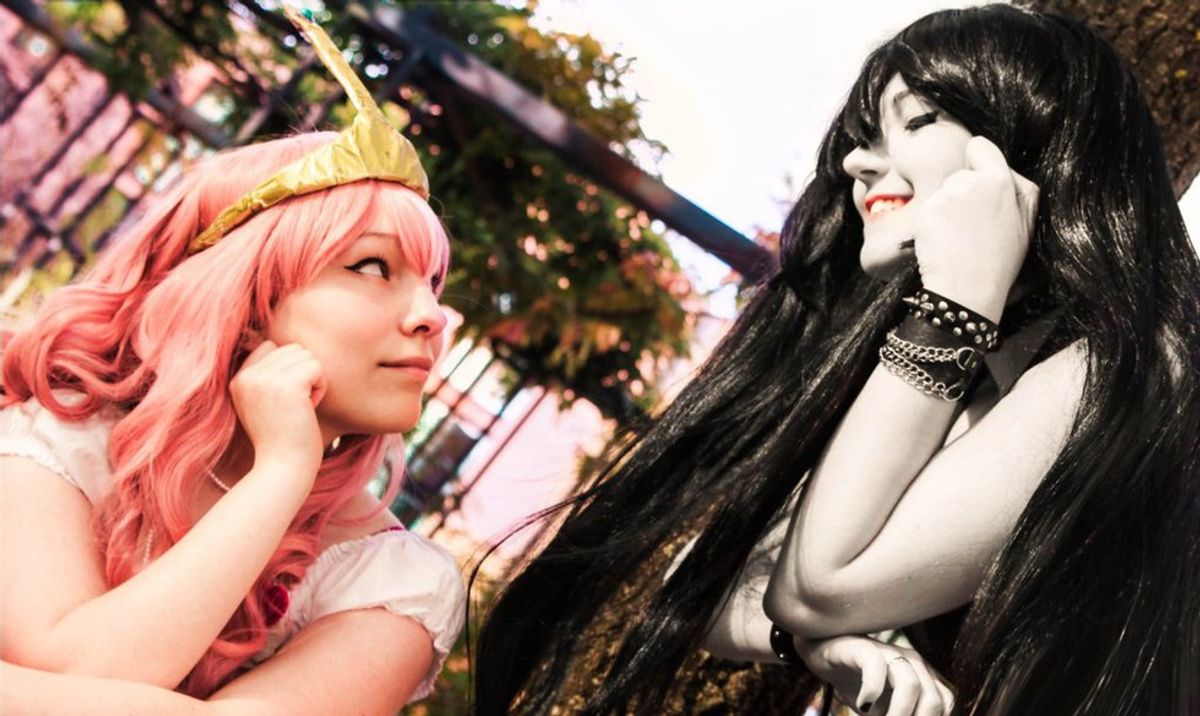 For a girly and grungy couple, Marceline and Bubblegum will be easy to replicate. All you need is a black tank top, jeans and boots, with an optional guitar, for Marceline and a pink dress and crown for Princess Bubblegum.