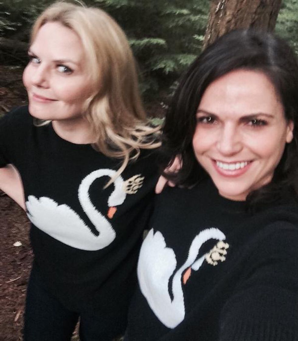 However, as their relationship developed into a close friendship, I could see a romantic relationship emerging as well. After all, they're two confident, powerful women who already share a son; they'd be perfect. (Mostly, I'd just like to see Hook and Robin gone, but I digress.) Even Jennifer Morrison and Lana Parilla support the pairing; they got matching sweaters!
