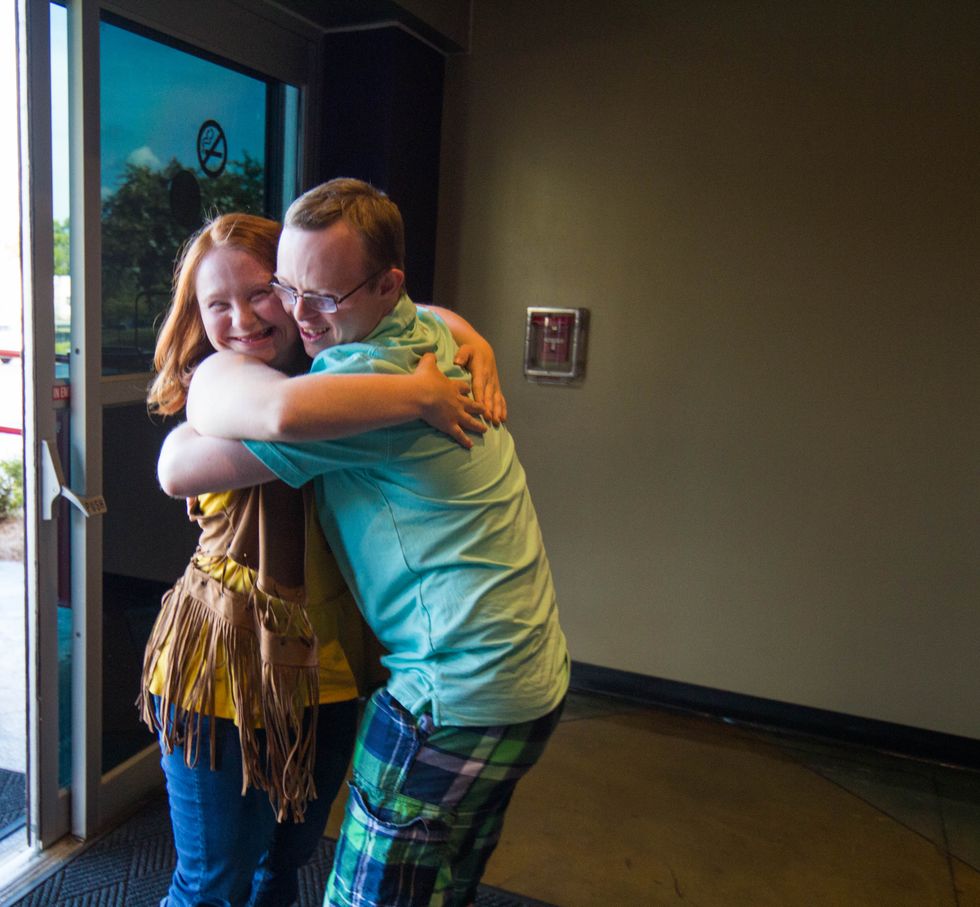 When Rion saw Rachel, his excitement because obvious because he ran up to her and immediately greeted her with the biggest hug imaginable.