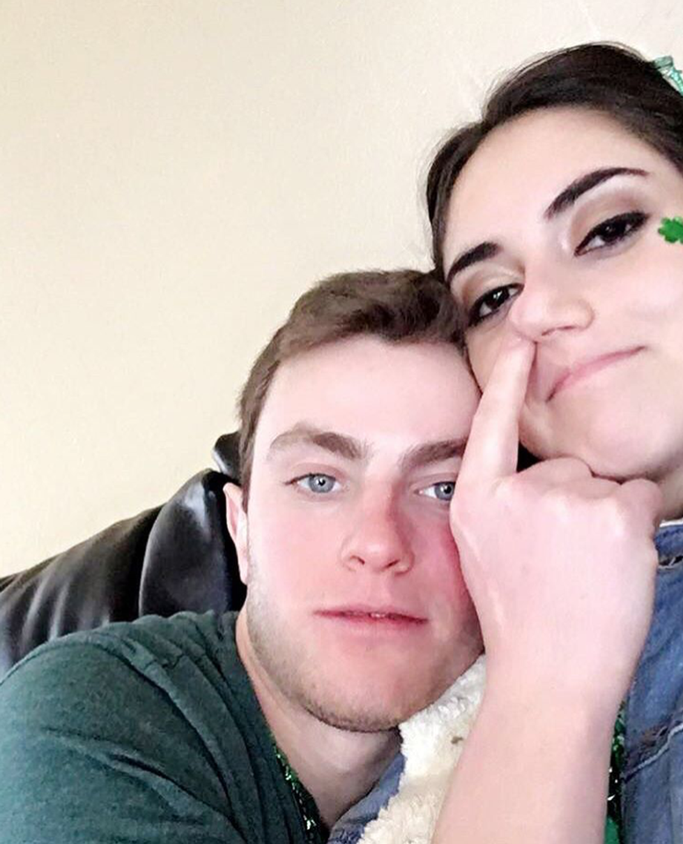 "My boyfriend and I consistently make weird faces in pictures together. Neither one of us knows why. We just started doing it one day and now it’s kind of an unspoken joke." — Lily Snodgrass
