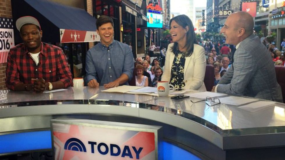 Jost, a former head writer for "Saturday Night Live," used his wit and humor to grab audiences attention and bring out the comedic side of politics. The conventions were like a giant playground to the two anchors, and they sure did play. From their game of "Who is Mike Pence?" that appeared on "The Today Show" to even chatting with Bernie supporters!