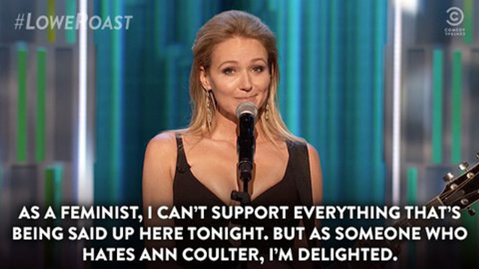 Jewel may not be relevant in the music industry anymore but she made fun of Rob Lowe to the tune of her song, "You Were Meant For Me" I thought she was very good and had a lot of great Ann Coulter burns. There were too many to put in this article.