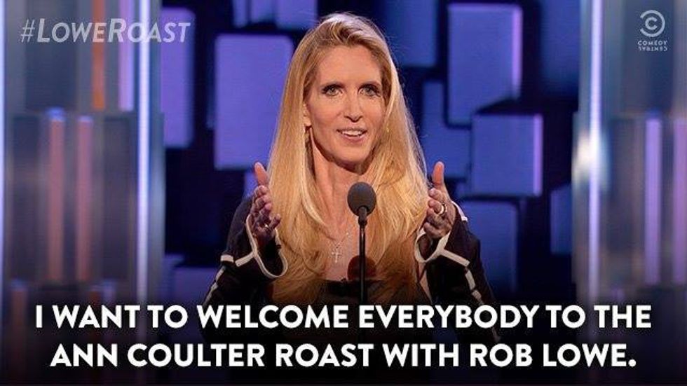 "Holy shit, is that Ann Coulter? Ann Coulter is here, which can mean only one thing: Someone must’ve said her name three times. Beetlejuice, Beetlejuice, Beetlejuice."