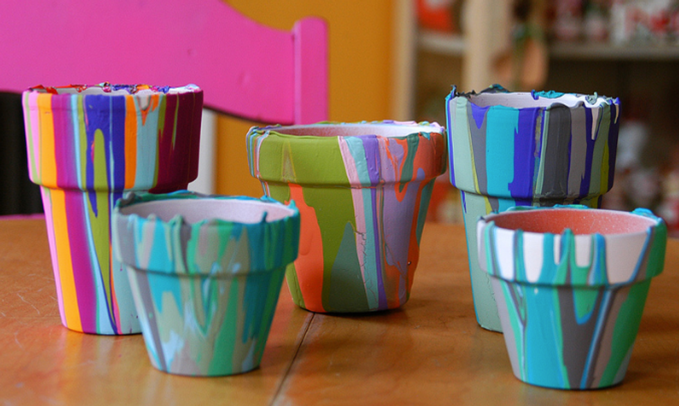 Another craft you don't need very many materials for. All you need are glass vases, a paint brush, confetti glitter and glue. You can see the full tutorial for these here.