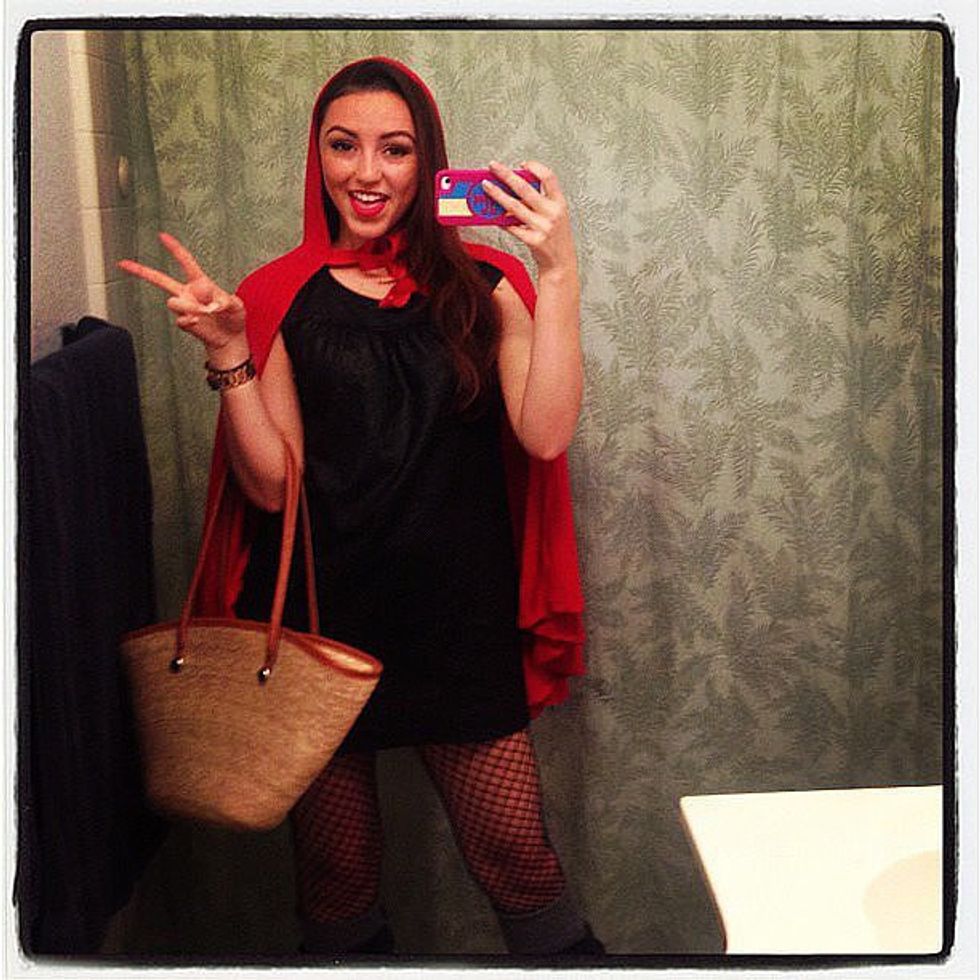 With this simple outfit, you will be ready for your Halloween party in no time. All you need is a little black dress, shoes to match, and a red cape and basket. Then you are all set.