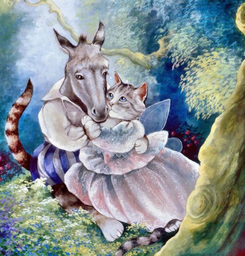 A crazy love rectangle tale where Hermia loves Lysander, Lysander loves Hermia, Demetrius loves Hermia, and Helena loves Demetrius. Puck, a fairy, messes around with love potion to pair Hermia and Lysander together and Helena and Demetrius together. Also, Oberon, king of fairies, decides to get revenge on his wife by turning a guy named Bottom's head into that of a donkey, then giving his wife love potion to make her "enamored with an ass."