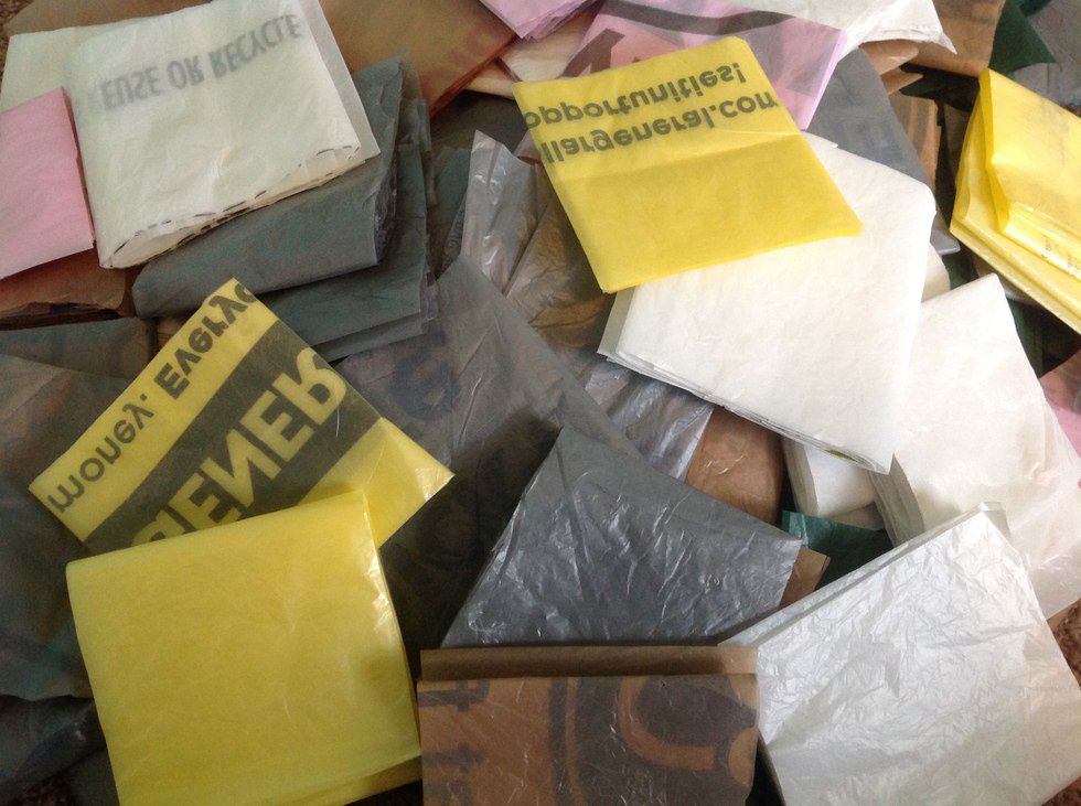 Okay, so it’s not exactly what you think. I collect plastic grocery store bags and use them to make sleeping mats. These mats are taken downtown by a ministry group at my school to be given to the homeless. They serve to provide a little bit of padding on the hard ground. The mats also make it easier to keep blankets dry and are easy to rinse clean.