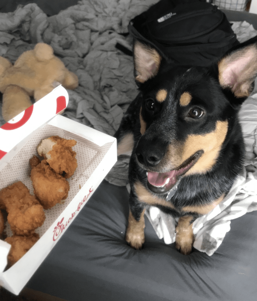 Buy him Chick-fil-a nuggets if you are gone for too long