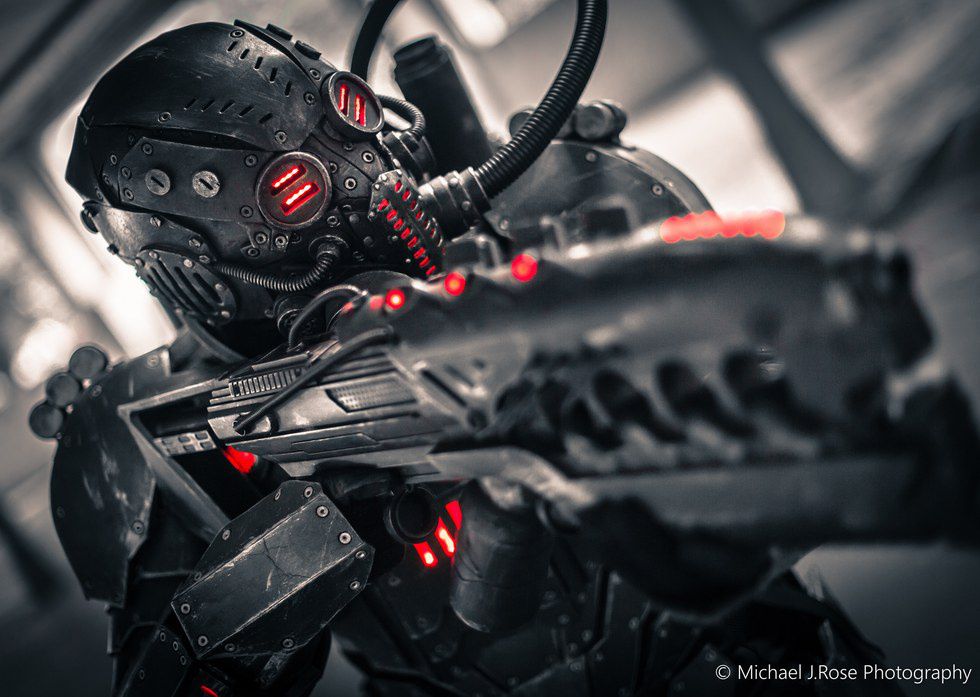 When people see Panzer for the first time two questions normally come to mind; How can you see and how long did it take to make? Well the first question is easy to answer, you see through the eyes lol. Brian makes it a priority to hide the wearers eyes from sight. So he places bright LEDs over the eye slots blinding onlookers from being able to see inside the mask while allowing the wearer inside to see just fine.