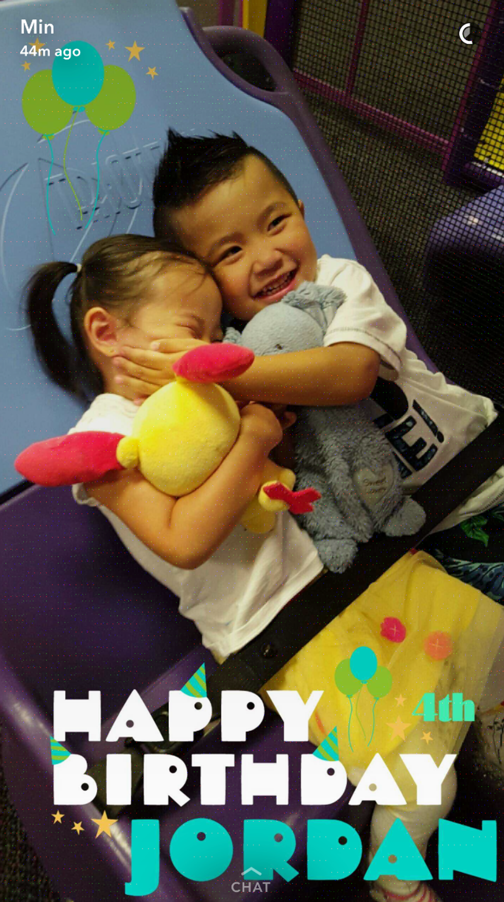 The "Create Online" option is what I'm geeking out over! This means that I can hop on days before an event and submit a filter in literally 5 minutes, all without having to use any outside tools! I think we're going to see an influx of geofilters at events like baby showers, weddings, parties, and even restaurants and bars due to this awesome web based tool. I went on what I deemed a Snapchat Geofilter rampage yesterday. I made a filter for a friends grad party, a child's 4th birthday, a wedding in Arizona, and an upcoming anime convention in Denver called Nan Desu Kan... all thanks to this tool. One of the filters went live today as I'm writing this. Here is how it turned out for adorable Jordan's 4th birthday bash at Chuck E Cheese: