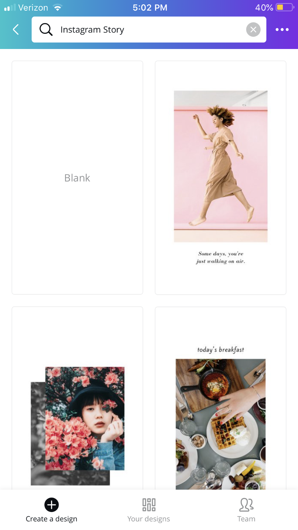 Canva gives you the freedom to use your imagination to create customized designs fast that correspond with your interests, preferences and Instagram feed! The possibilities are endless so...