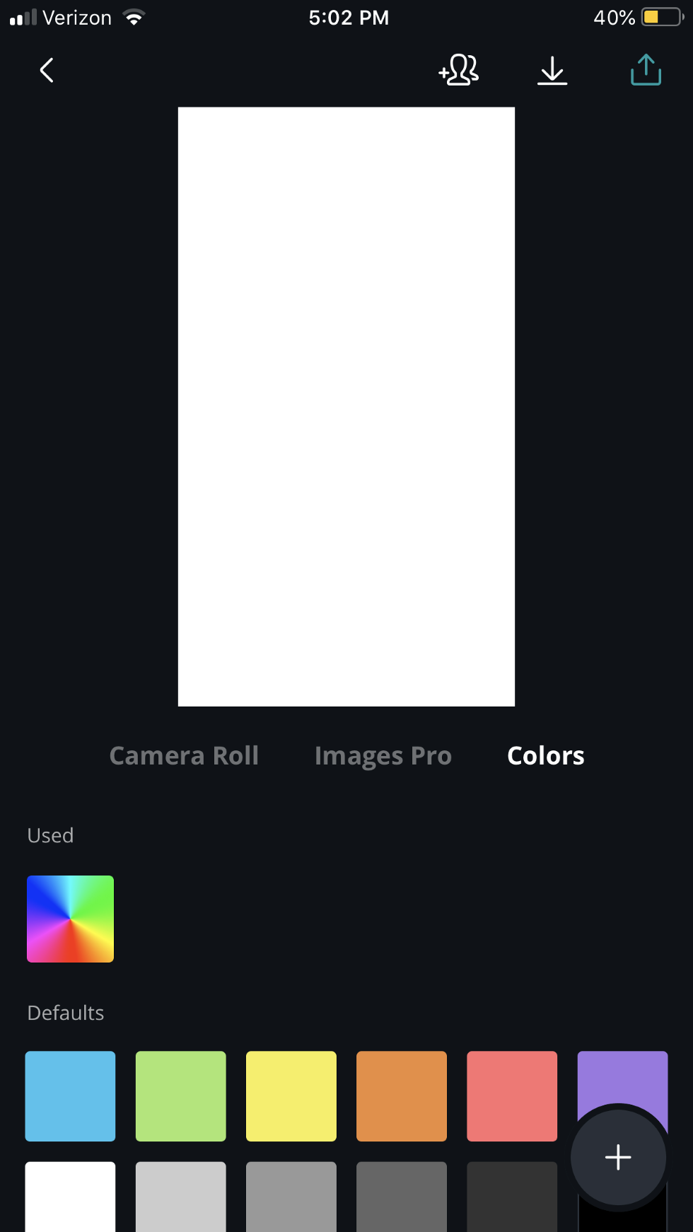 5. Clicking the blank screen triggers the appearance of the color wheel along with a variety of default color options.