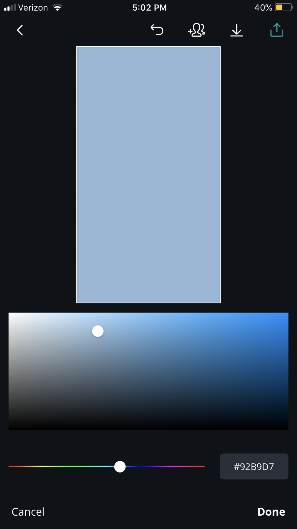 6. In this case, I'm using one of my favorite shades of blue. Play around with the color wheel until you get the color and shade you're looking for. (If you want a white background, less work for you, keep going.) Once you have created the color you want to use click "Done" in the bottom right corner.