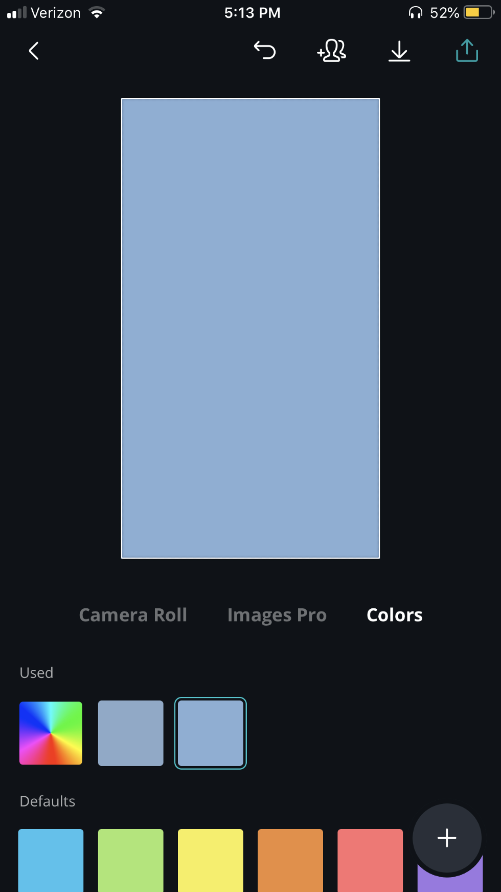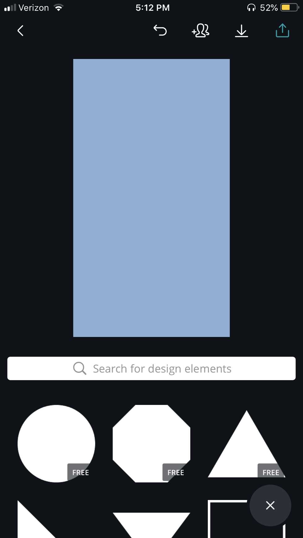 11. Once you are happy with what you have created click the download button (second from the top right corner). Once you do it will finalize and process your design. You should see the caption "Making the magic happen..." You can also click the export button (the last button in the far top right corner and click "save as image", either way will ensure the design is saved to your camera roll.