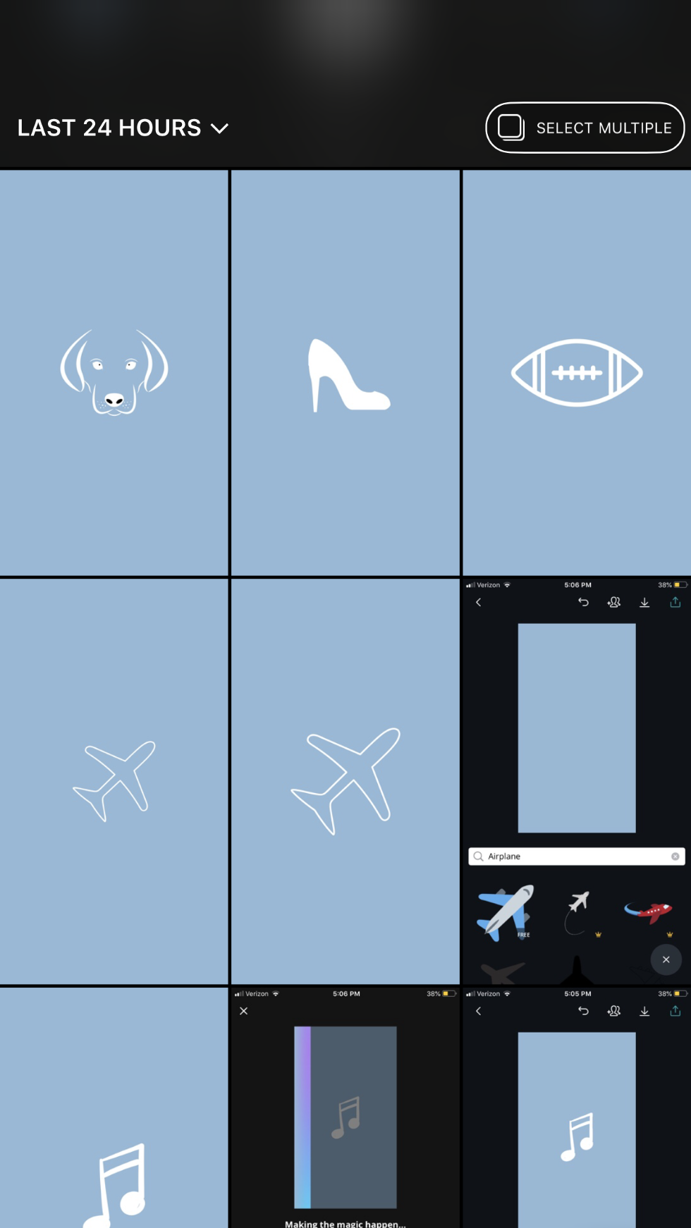 9. Scroll through the given graphics for inspiration or use the search bar to look up something specific. For example, if I wanted one of my highlight sections to be about music I could search "music" or "music note".