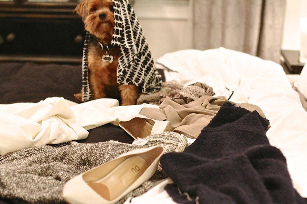 “Watch out for the dirty laundry.” Janie calls to her guest while stepping over an invisible pile. “My chair’s full of papers right now so go ahead and take a seat on my bed. You can just throw the wrappers on the floor. I’ll pick them up later.”