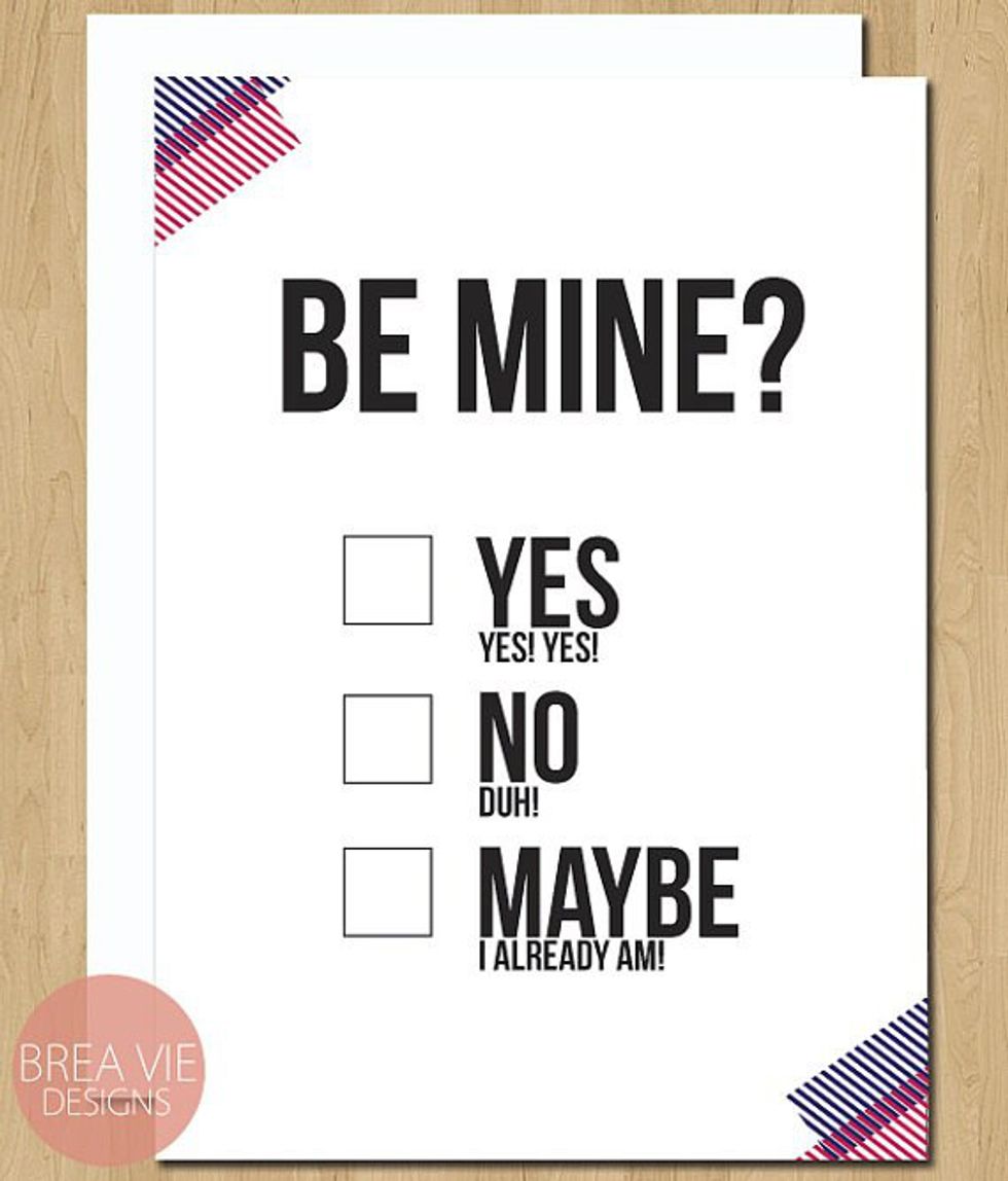 The card doesn’t necessarily have to say “Be Mine” but it’s the question that counts, right? If you really want a certain someone to be your valentine, buy a “Be Mine” card. They’re not that expensive.