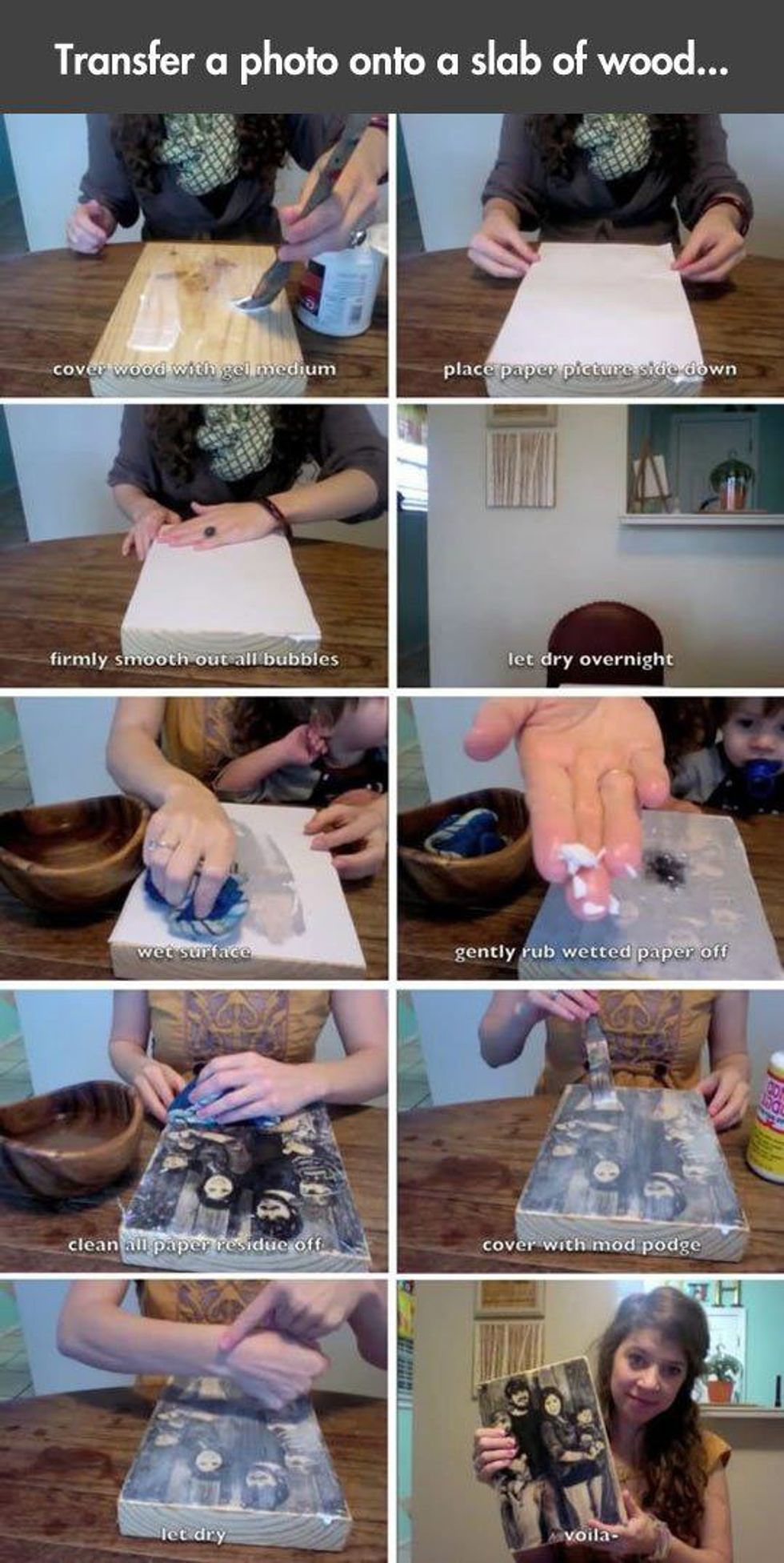 This is another Pinterest oldie and thanks to my amazing Photography teacher last year our class did a foolproof version. The original pin involves a piece of wood, a printed out photograph, and almost a guarantee of frustration. I tried the first version before and when it came time to rub off the paper portion, the ink came right along with it. However, when I did this project in photography class, I was instructed to mod podge the original picture multiple times and then put the entire picture in water and rub the backing off. This process makes a world of a difference. The ink didn’t budge like the first time and it was so much easier to just take the picture and plop it on the desired surface. On a side note the picture below is the original pin because I couldn’t find mine.