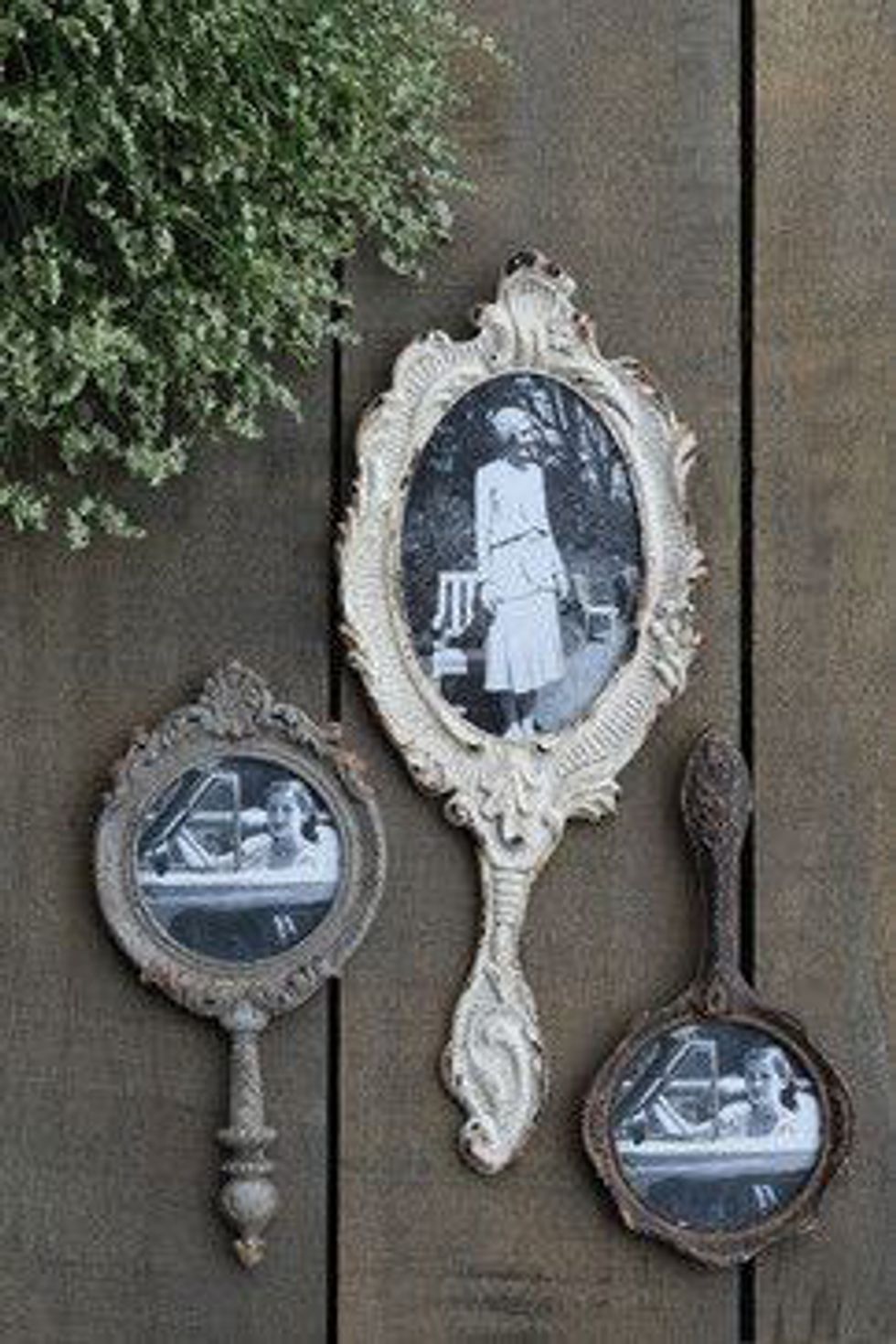 I think this is such a great idea! I haven't done this myself yet but I love the idea of using vintage hand mirrors to display black and white photos. If you love antiquing or have a lot of old family photos, this is the display idea for you!